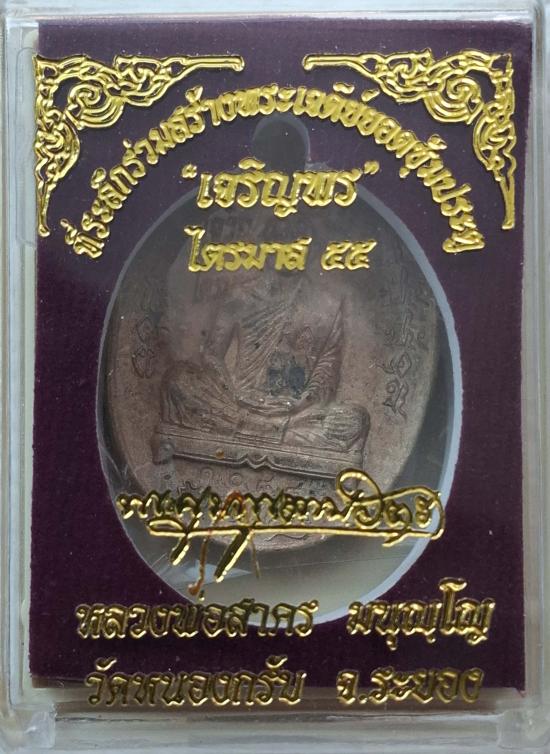 เหรียญหล่อ เจริญพรไตรมาส หลวงพ่อสาคร วักหนองกรับ เนื้อนวะโลหะ ปี 2555 เลข 1088 ซีลเดิมจากวัด สภาพใหม่ยันกล่อง แทบไม่ต้องมือผู้ใด เคาะกันไปเบาๆ