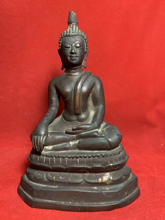 รายละเอียด พระบูชารัชกาล เนื้อแดง ฐานดินไทย หน้าตักประมาณ 4 นิ้วหย่อนนิด ปลายเกศหักตามรูป เคาะเดียวเบาๆ