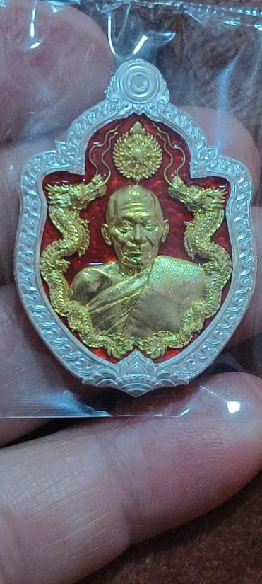 (( วัดใจ )) อายุวัฒนมงคล หลวงปู่ศิลา สิริจันโท + มังกรคู่ ฝาบาตรลงยาแดงขอบเงิน เลข.๑๒๔๗ กล่องเดิม สู้ สู้