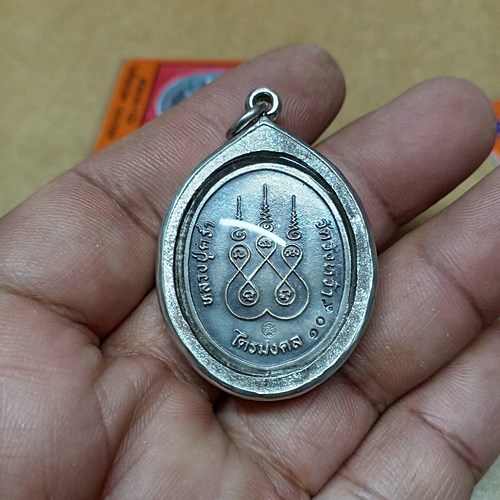 เหรียญไตรมงคล หลวงปู่คร่ำ เนื้อเงินลงยา พร้อมเลี่ยมกรอบมือหนึ่งเงินแท้ งาน 92.5% ขึ้น กรอบหนา เดินทรายตัดขัดเงา classic.. |