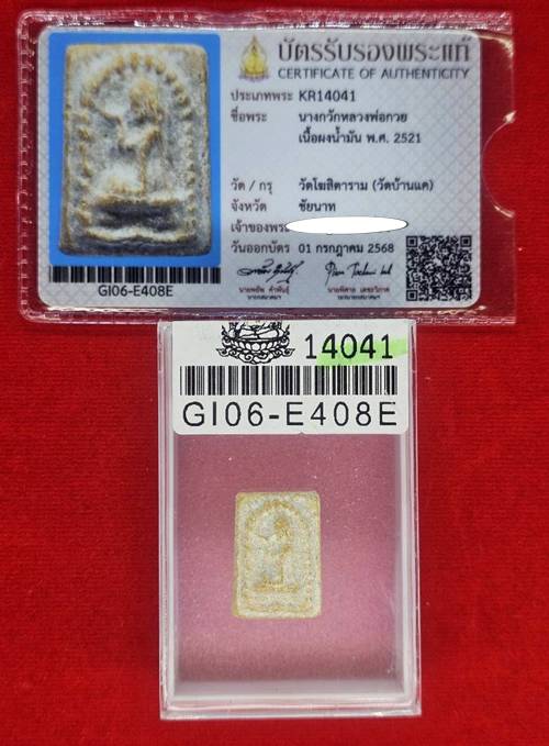 นางกวัก หลวงพ่อกวย วัดโฆสิตาราม เนื้อผงน้ำมัน ปี2521 พร้อมบัตรรับรองสมาคม