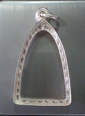 <<กรอบเงินแท้95%>>มือหนึ่ง ยกซุ้มหัวสิงห์ ใส่พระหลวงปู่ทวดหลังหนังสือ ปี24 งานมือช่างทองแกะลายลึกๆสวยๆ หนัก5.81g |