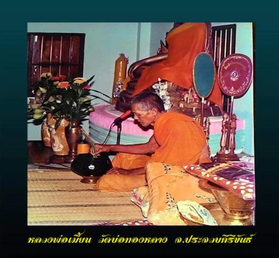 หลวงพ่อเมี้ยน วัดบ่อทองหลาง ท่านเป็นศิษย์ของ หลวงพ่อทองสุข วัดโตนดหลวง เป็นเกจิคณาจารย์ที่รักสันโดษมาก ไม่ค่อยสิงสิงกับใคร นาน ๆ ครั้งจึงจะออกงานปลุกเสกหรือรับกิจนิมนต์ซักครั้ง