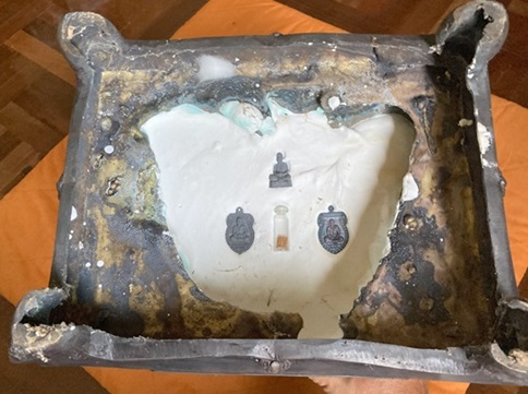 ใต้ฐานอุดเกศาและจีวร รูปหล่อและเหรียญหลวงตา