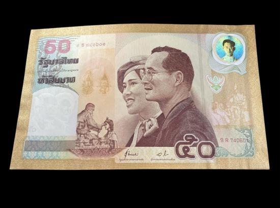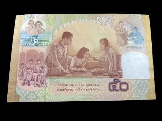 ธนบัตรที่ระลึกชนิดราคา 50 บาท เนื่องในอภิลักขิตสมัยมหามงคลวันราชาภิเษกสมรส ครบ 50 ปี 28 เมษายน 2543 และวันบรมราชาภิเษกครบ 50 ปี 5 พฤษภาคม 2543 สวยๆ ครับ |