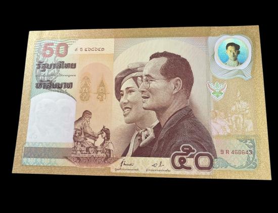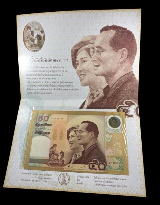 รายการที่ 3 ธนบัตรที่ระลึกชนิดราคา 50 บาท เนื่องในอภิลักขิตสมัยมหามงคลวันราชาภิเษกสมรส ครบ 50 ปี 28 เมษายน 2543 และวันบรมราชาภิเษกครบ 50 ปี 5 พฤษภาคม 2543 สวยๆ ครับ