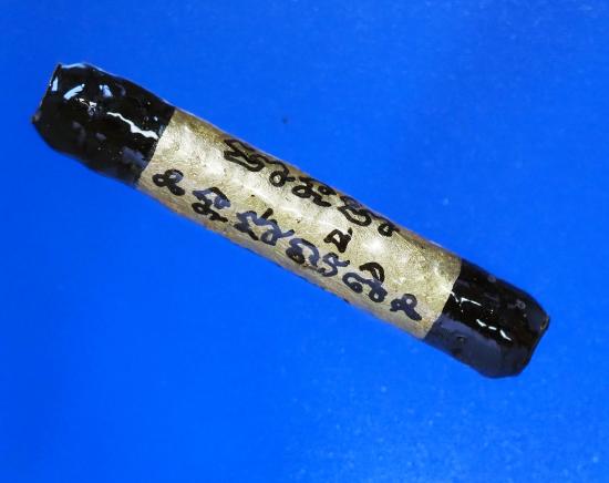 ตะกรุด เนื้อทองแดงพอกผงลงรักปิดทอง จารมือ ขนาด 5 ซม.กว้าง 0.9 ซม. สภาพสวยมาก แท้ไม่ทราบที่ เคาะแรก |