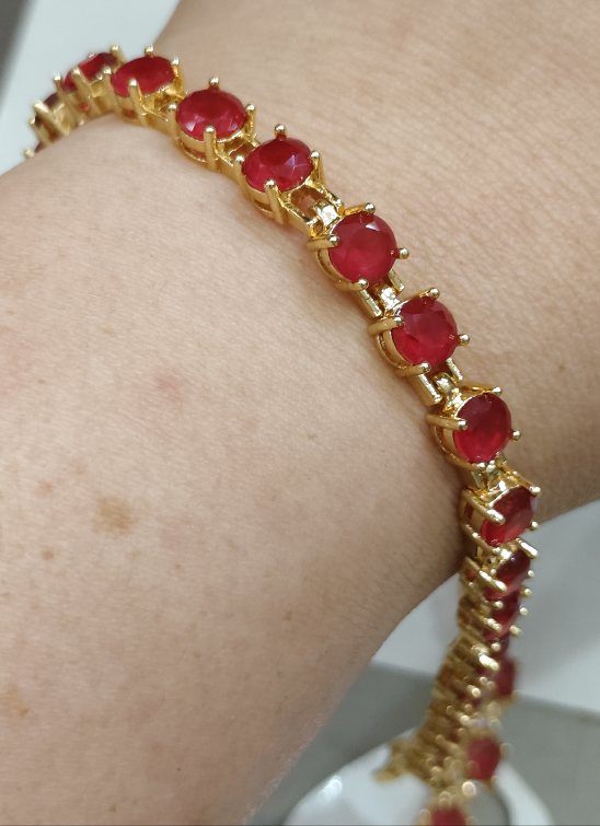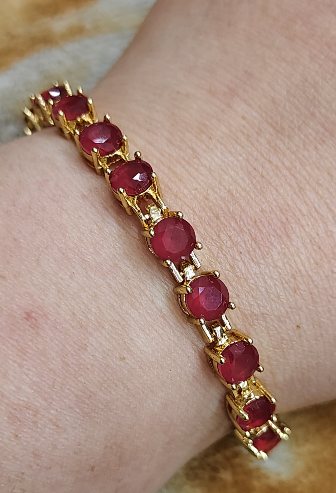 เทขาดทุน+ +เทปีใหม่++กำไลข้อมือทับทิมยาว 7.นิ้ว งานจิวเวลลี่ชุบทองแท้ |