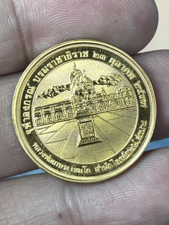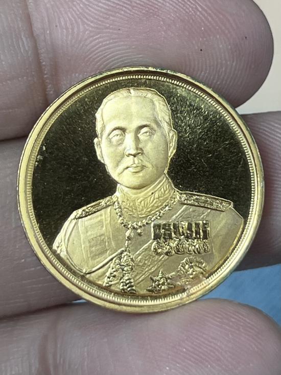 เหรียญรัชกาลที่5 กะไหล่ทอง หลวงพ่อเกษม ปี2537 บล็อกนอก สภาพสวย