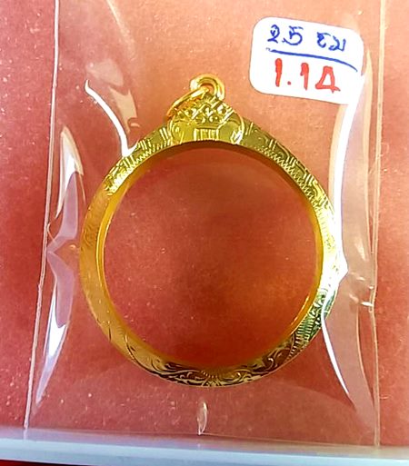 กรอบทองคำแท้ยกซุ้มสิงห์ ใส่เหรียญกลม/ลูกอม/จอในกรอบ 2.5ซม.//ลูกอมที่ใส่ได้ต้อง2.3ซม.น้ำหนัก 1.14 กรัม |