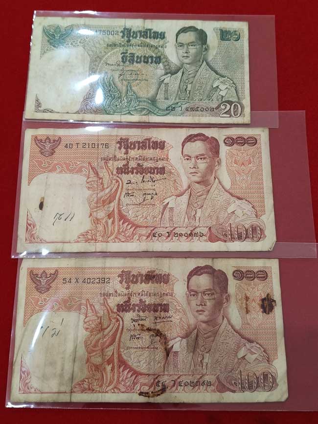 ธนบัตรรุ่นเก่า ร.9 สภาพผ่านการใช้งานเก่า