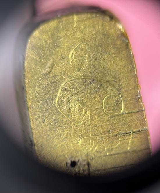 พิมพ์เข่าย่อ เนื้อทองผสม ผิวเดิมไม่มีโค๊ด แต่พิเศษ มีรอยจาร