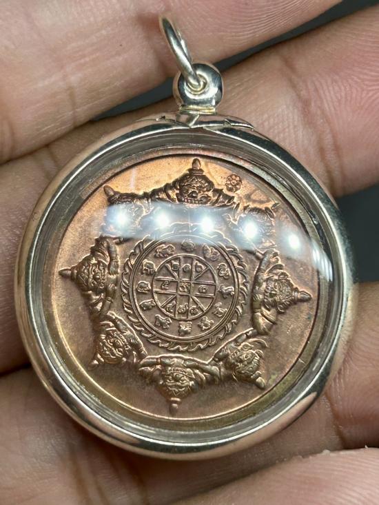 ปรกเกล้า เนื้อทองแดง แจกในพิธี โค๊ดทองคำ มีเฮง แต่ลาง ๆ พร้อมเลี่ยมเงินครับ