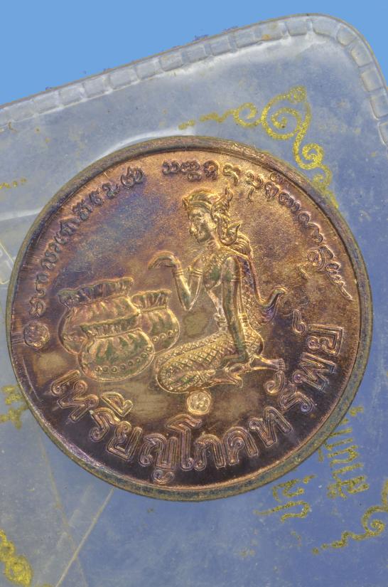 เหรียญโภคทรัพย์นางกวัก หลวงพ่อเกษม เขมโก ปี36 เนื้อทองแดงพร้อมซองเดิม |