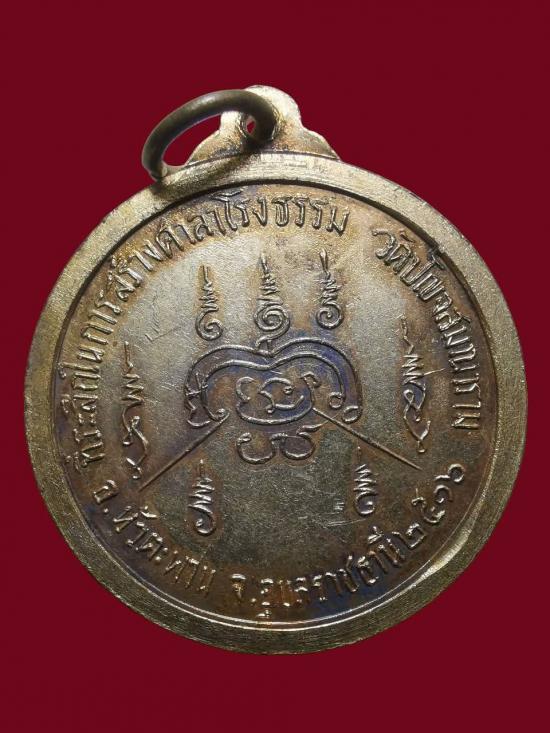 เหรียญหลวงปู่ขาว อนาลโย วัดถ้ำกลองเพล รุ่นสร้างศาลาโรงธรรม ออกวัดปัญจสมณาราม เนื้อทองแดงกระไหล่ทอง ปี2516 จ.อุบลราชธานี |