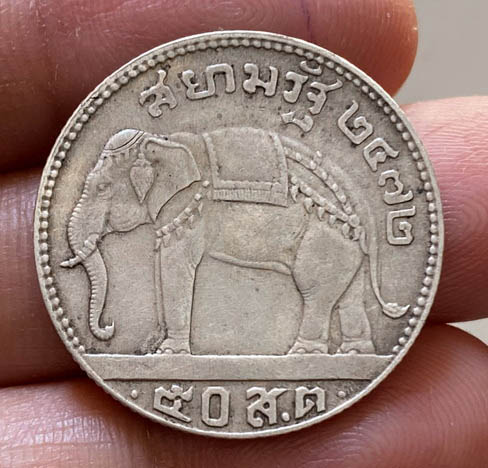 เหรียญ พระประชาธิปกหลังช้าง รัชกาลที้ 7 ราคา ๕๐ ส.ต. เนื้อเงินแท้ สวยมาก