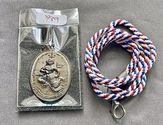 เหรียญหนุมาน "ชนะศึก" หลวงพ่ออ่าง วัดใหญ่สว่างอารมณ์ "เนื้อมหาชนวนแจกทหาร (ชายแดนช่องบก - ภูมะเขือ) พร้อมเชือกลายธงชาติ เลขเรียงนำโชค "789" |