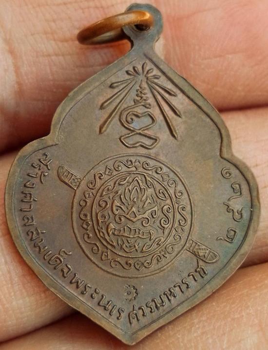 เคาะเดียวแดง.....เหรียญหน้าวัวเนื้อทองแเดง รุ่น สร้างศาลสมเด็จพระนเรศวรมหาราช หลวงปู่แหวน สุจิณฺโณ พศ.2521 |