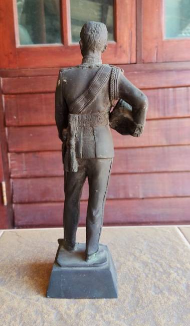พระบรมรูปขนาดบูชาล้นเกล้ารัชกาลที่ 5 ทรงชุดจอมพลเต็มยศ เนื้อโลหะ ด้านหน้าสลักจุฬาลงกรณ์ |