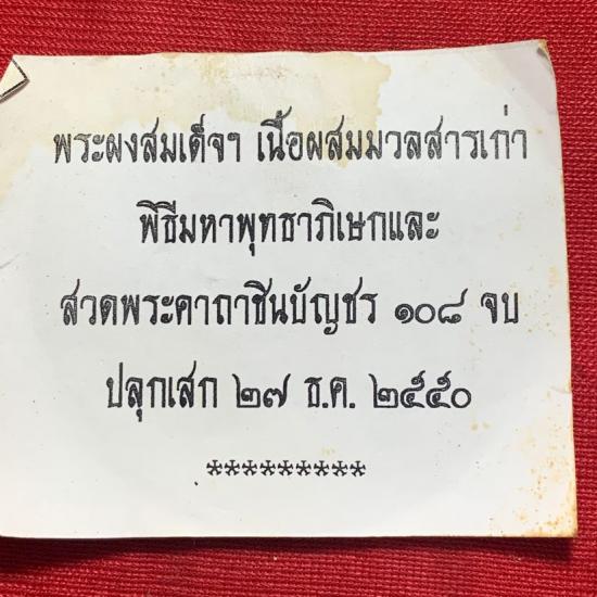 พระผงสมเด็จฯ ที่สร้างจากเนื้อผสมมวลสารเก่า จัดพิธีมหาพุทธาภิเษกและสวดพระคาถาชินบัญชร 108 พระพิธีธรรมวัดระฆังโฆสิตาราม ปี2550 |