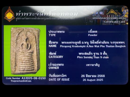 เว็ปg รับออกบัตรแต่พิมพ์ สามปลื้ม นะครับ พิมพ์อื่นยังไม่รับออกบัตรสำหรับพระผงกระดูกผีวัดโพธิ์ องค์นี้ผมรับประกันแท้ตลอดชีพ พร้อมบัตรรับรองพระแท้!! |