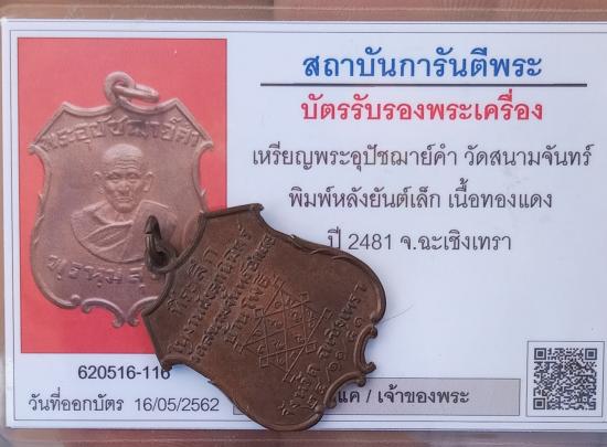เคาะเดียวแดง+++เหรียญหลวงพ่อคำ วัดสนามจันทร์ รุ่นเเรก ปี2481 บล็อคยันต์เล็ก เหรียญยอดนิยม เนื้อทองเเดง ผิวไฟสวย พร้อมบัตรการันตีพระแท้ |