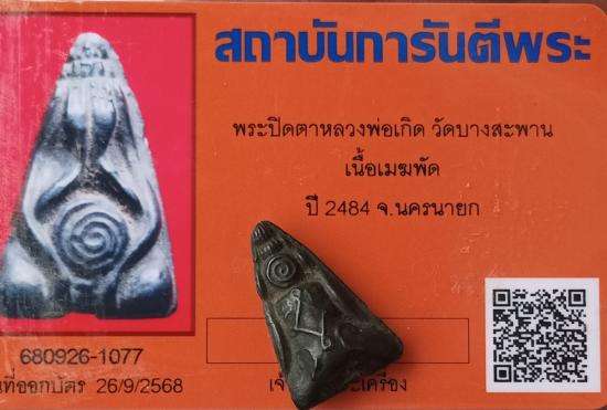 เคาะเดียวแดง++พระปิดตาหลวงพ่อเกิด วัดบางสะพาน เนื้อเมฆพัด ปี 2484 จ.นครนายก มาพร้อมบัตรรับรองพระแท้ครับ