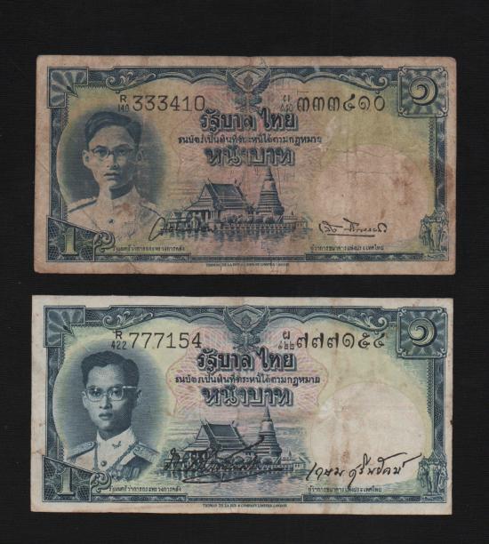 วัดใจ ธนบัตร 1 บาท จำนวน 2 ฉบับรุ่นโทมัส มีทั้งหน้าหนุ่ม (นิยม) ลายน้ำพานรัฐธรรมนูญ และรุ่นโทมัส หน้าธรรมดา หายากมาก