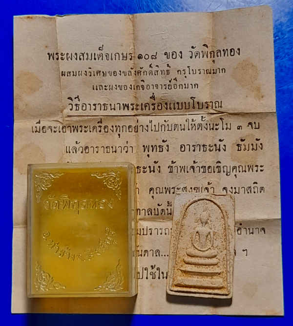 +++(( วัดใจเคาะเดียว 100 บาท )) พระสมเด็จเนื้อผงเกษร ๑๐๘ หลังรูปเหมือน หลวงพ่อแพ วัดพิกุลทอง ปี09 สวยเดิมๆๆๆพร้อมใบฝอย และกล่องเดิมๆๆๆครับ +++