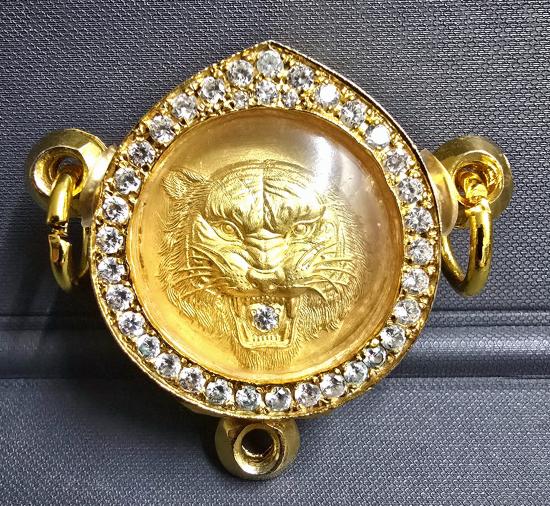 เหรียญกลมหน้าเสือ รุ่น"เจริญพร" หลวงปู่บุญมา โชติธัมโม วัดเขาแก้วทอง ปราจีนบุรี เนื้อนวะโลหะชุบทองคำ ฝังเพชรปาก ใส่ตลับอิตาลีชุบทองฝังเพชร 3 ห่วง หมายเลข ๕...พร้อมห้อยสวยๆครับ เคาะแรกแดง (ไม่มีกล่อง |