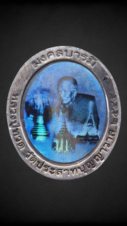 เคาะเดียว เหรียญหลวงพ่อทวด มงคลบารมี วัดประสาทบุญญาวาส ** เนื้อชุบเงินซาติน ** หลังติดแผ่นภาพโฮโลแกรม ปี 45 |