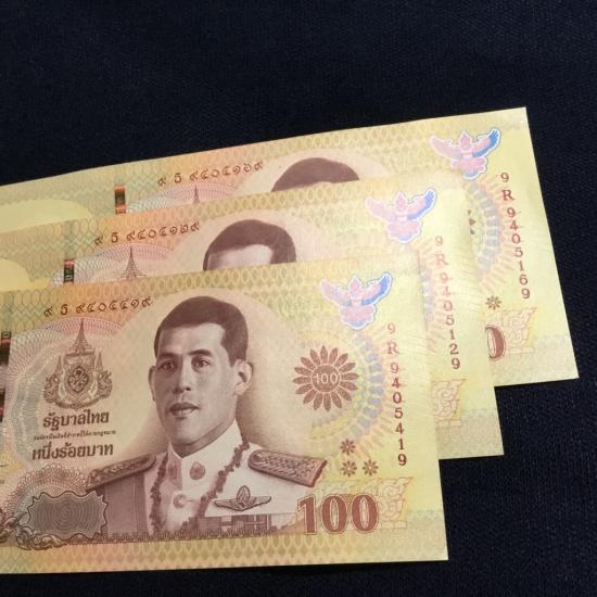 แบงค์ 100 รัชกาลที่ 10 ที่ระลีก บรมราชาภิเษก **หมวด9/ 9หน้า/9หลัง** ทุกฉบับ รวม 3 ฉบับ เลข 9R-9405419/9R-9405129/9R-9405169