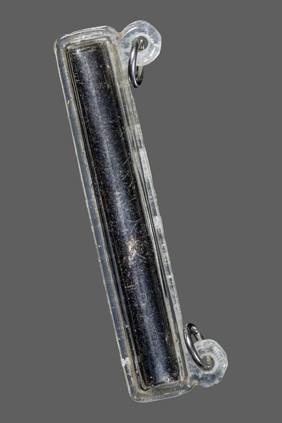 ตะกรุดเนื้อเงิน มีจาร ในเลี่ยมเก่า ไม่ทราบที่ ราคา 150 บาท ชมดูก่อนครับ