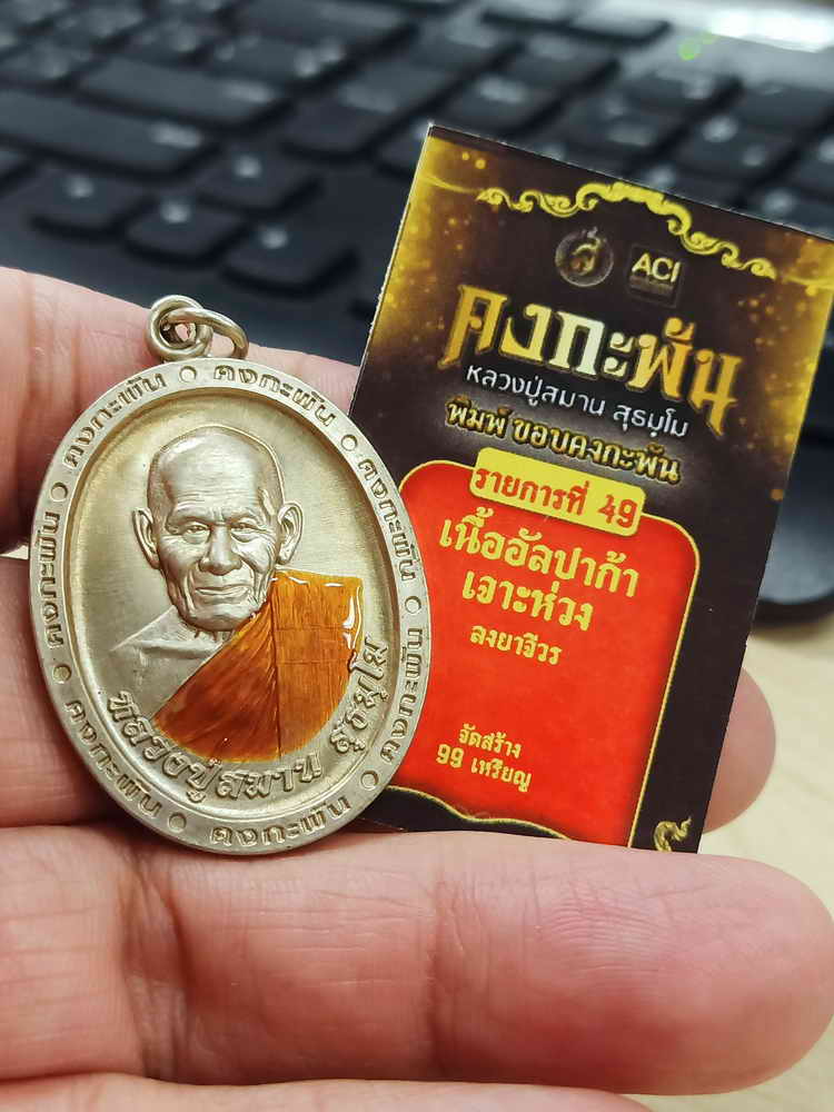 วัดใจ 100 เหรียญคงกะพัน หลวงปู่สมาน สำนักสงฆ์เขายางหัก ปากท่อ ราชบุรี 2566 อัลปาก้า เจาะห่วง ลงยาจีวร หมายเลข 21 สร้าง 99 กล่องเดิม***ACI รับรอง