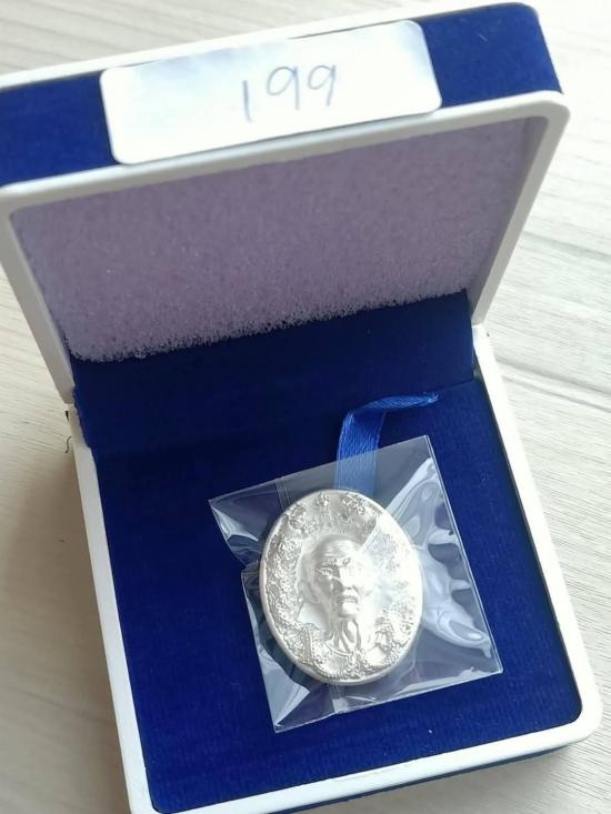 เหรียญหล่อแปะโรงสี พลิกฟ้าประทานพรมังกรคู่ เลขมงคล "199" สร้าง 200 เนื้อเงิน นิยม สภาพสวยผิวสวย พร้อมกล่อง ซีลเดิม รับประกันแท้ตลอดชีพ