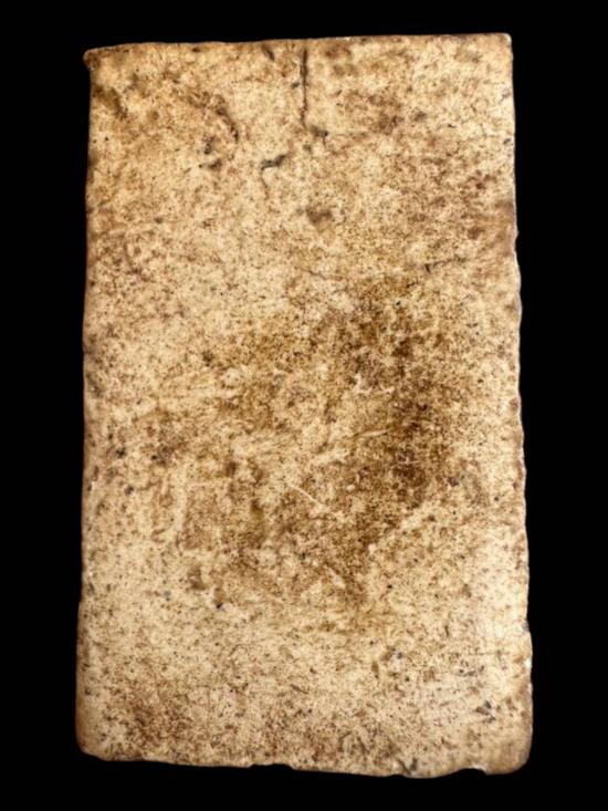 ด้านหลังเรียบแห้ง มีคราบกรุเก่าสีน้ำตาลกระจายทั่วพื้น