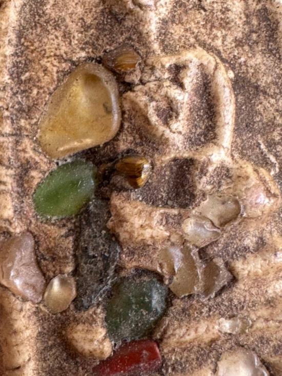 มวลสารฝังแน่นทั้งเม็ดพลอยแดงเขียวเหลือง พร้อมเม็ดแร่เก่า ช่วยบอกอายุโดยรวมได้ดี