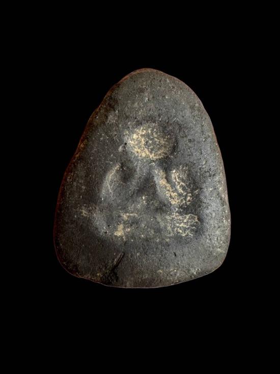 องค์นี้มีผิวจัดธรรมชาติทั้งองค์ เนื้อพระออกดำสนิทแทรกผงมวลสารละเอียดทั่วผิว ด้านหน้ามีโรยผงทองเก่าตามธรรมชาติ ให้ความรู้สึกขลังแบบพระยุคต้น ผิวด้านหลังมีความแห้งเก่าและผิวร่อนเล็กน้อยตามกาลเวลา พิมพ์ทรงปิดตาโบราณ องค์พระนั่งขัดสมาธิ มือปิดหน้า ชัดตามแบบฉบับเก่า มีเสน่ห์และมิติตามธรรมชาติของพระเนื้อผงยุคต้น เหมาะสำหรับสายสะสมหรือท่านที่ชอบความคลาสสิกของพระปิดตาเก่าเดิม (เคาะเดียวแดง) |