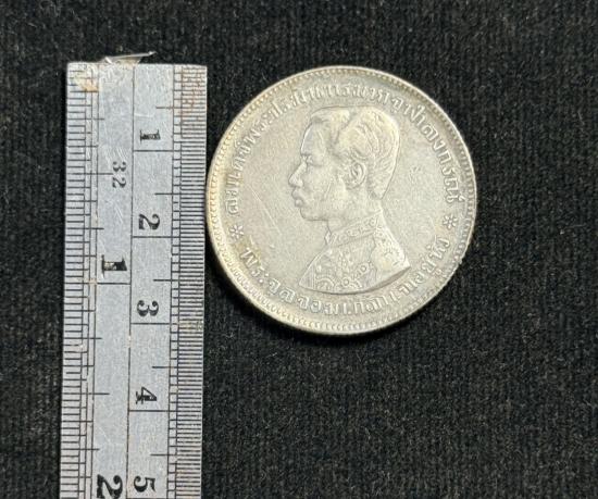 วัดใจ 100 เดียวแดง ++ เหรียญหนึ่งบาท ร.5 หลังตราแผ่นดิน เนื้อเงินแท้ สภาพผ่านใช้งาน