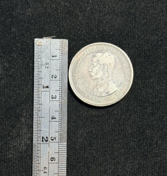วัดใจ 100 เดียวแดง ++ เหรียญหนึ่งบาท ร.5 หลังตราแผ่นดิน เนื้อเงินแท้ สภาพผ่านใช้งาน