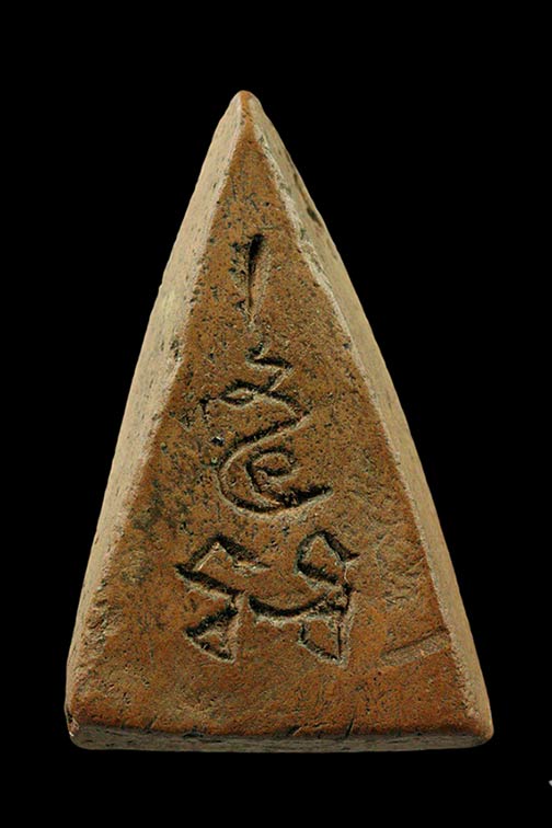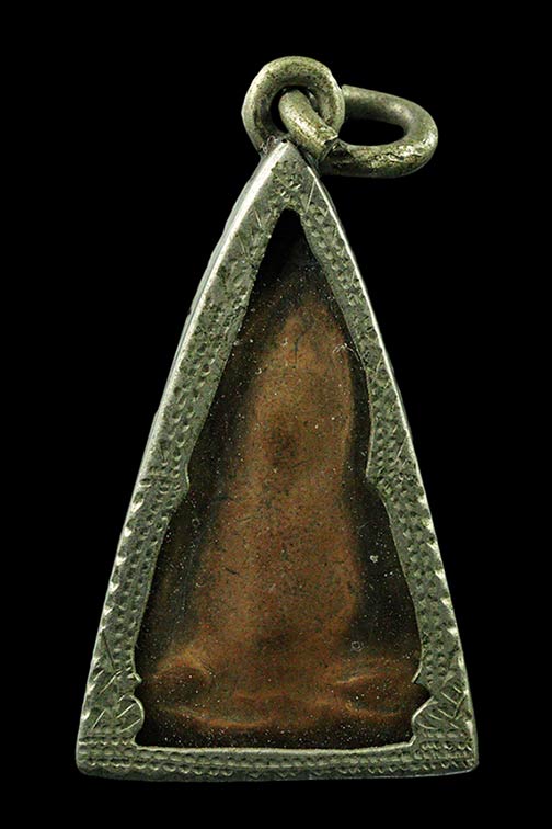 พระนางพญา เนื้อดิน หลังมีรอยจาร เปียก เก่า ไม่ทราบที่ กรอบแป๊ะตั๋งโบราณ |