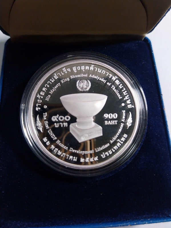 เหรียญรางวัลความสำเร็จสูงสุดด้านการพัฒนามนุษย์ ปี 2549 ร.9 ราคาหน้าเหรียญ 900.-บาท เนื้อเงินบริสุทธิ์ 99.9% น้ำหนัก 31.1 กรัม ขัดเงา พร้อมกล่องเดิมครบชุดตามรูป