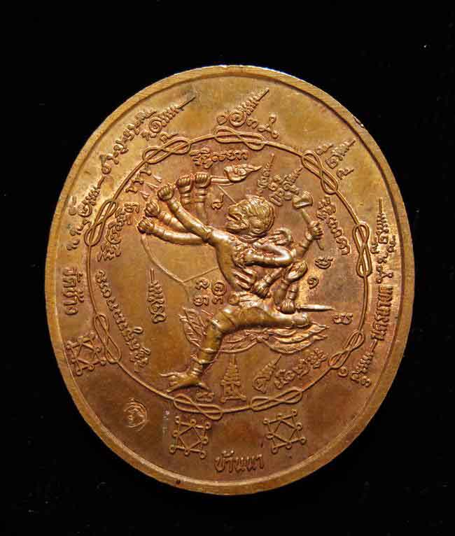 เหรียญนารายณ์หลังหนุมาน 10 กร รุ่นแรก เนื้อทองแดง พระครูธวัชภัทราภรณ์ อ.ต๊ะ อดีตเจ้าอาวาสวัดช้าง อ.บ้านนา จ.นครนายก ผู้สืบสานตำนานพระกริ่งวัดช้างอันลือลั่น