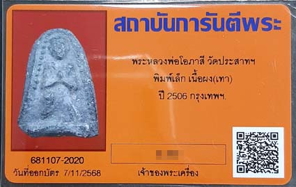 หลวงพ่อโอภาสี วัดประสาทฯ พิมพ์เล็ก เนื้อผง(เทา) ปี2506 กทม. พร้อมบัตรรับรองครับ |