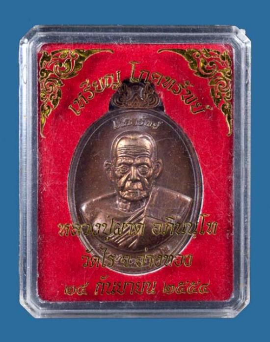 เหรียญโภคทรัพย์ หลวงปู่ผาด อภินนุโท วัดไร่ จ.อ่างทอง ปี 54 เนื้อทองแดงโบราณ เลข 1309 กล่องเดิม..เคาะเดียว