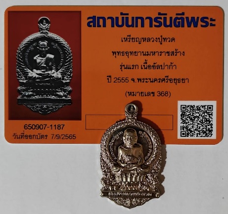 เหรียญปั๊มหลวงปู่ทวด พิมพ์เสมานั่งพาน พุทธอุทยานมหาราช รุ่น๑ เนื้ออัลปาก้า ปี 2555 หมายเลข ๓๖๗ |