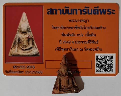 พระนางพญา วิทยาลัยการอาชีพวังไกลกังวลสร้าง พิมพ์หลัง ภปร.เนื้อดิน ปี 2549 จ.ประจวบคีรีขันธ์ พิธีพุทธาภิเษก ณ วัดพระศรีฯ |