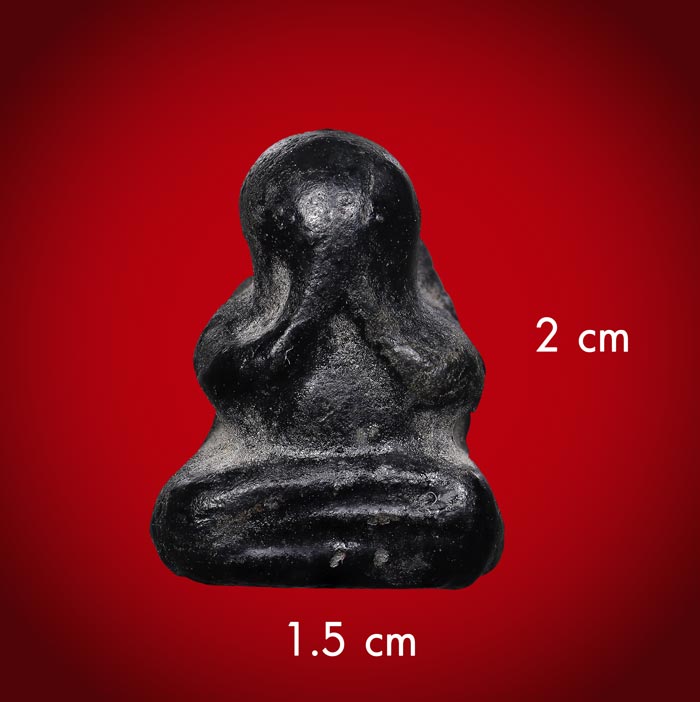 พระปิดตา เนื้อผงจุ่มรัก หลังเรียบ(ไม่ทราบที่) ขนาดพระฐาน 1.5 cm สูง 2 cm |