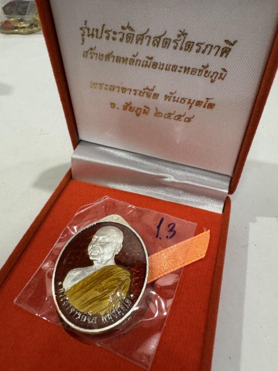 หลวงปู่จื่อ วัดเขาตาเงาะฯ รุ่นประวัติศาสตร์ไตรภาคี ปี2558 เนื้อเงิน ลงยาสีแดง no.13 มีกล่อง