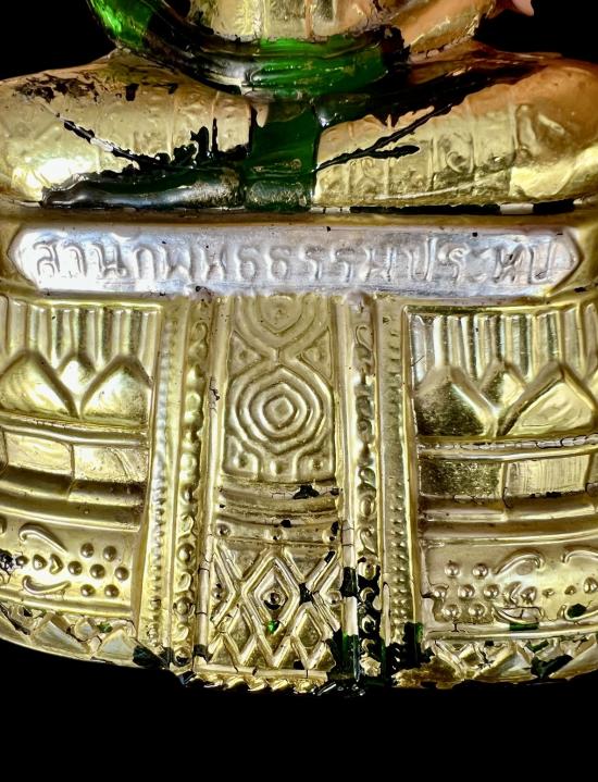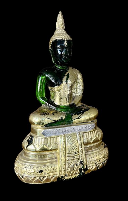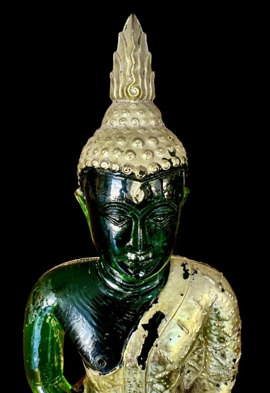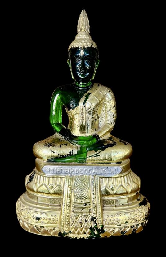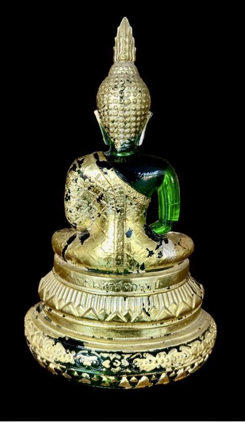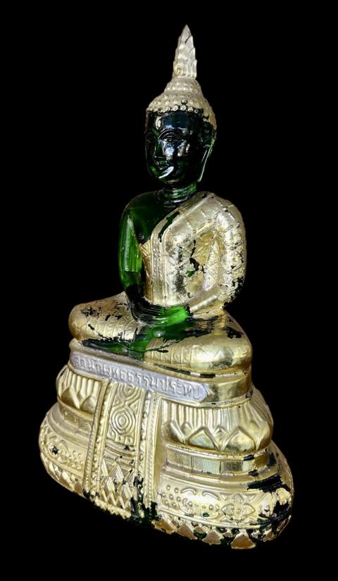 ชื่อพระเครื่อง พระแก้วพิธี 25 พุทธศตวรรษ พุทธาภิเษกวัดประสาทบุญญวาส สามเสน กรุงเทพฯ สำนักพุทธธรรมประทีป เนื้อแก้วสีเขียวกระไหล่ทอง สภาพสวยสมบูรณ์ ขนาดหน้าตัก 5 นิ้ว